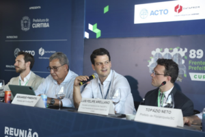 Prefeitos discutiram o tema “Cidades Resilientes: Adaptação Urbana e Prevenção de Desastres” na Arena da Baixada Um dos painéis de debate da Reunião Geral da